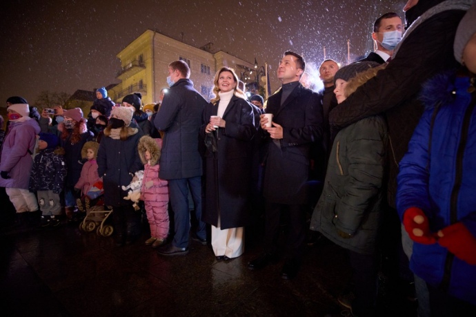 Президент Володимир Зеленський з дружиною Оленою відвідали святкове містечко, яке працюватиме поблизу ООПУпід час новорічних свят.