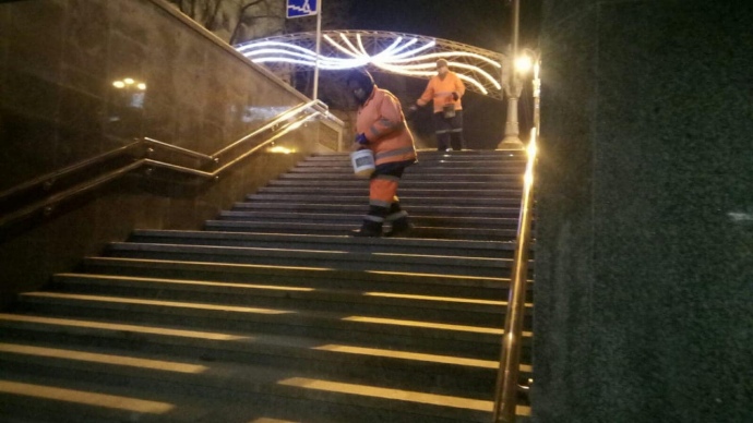 Першочергово обробляють мости і шляхопроводи, підйоми і спуски, вулиці з бруківки, тротуари, сходи підземних переходів.