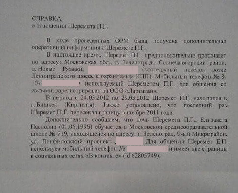 Додатково: Також в руки розлідувачів потрапили документи стеження за Павлом Шереметом.