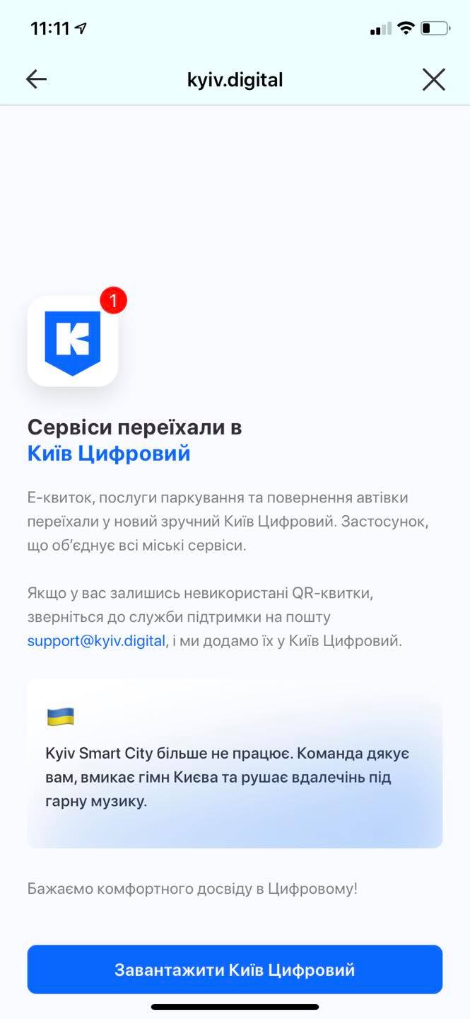 Додаток Kyiv Smart City з невідомих для розробників причин припинив роботу, а всі послуги відтепер будуть надаватися через новий застосунок "Київ Цифровий".