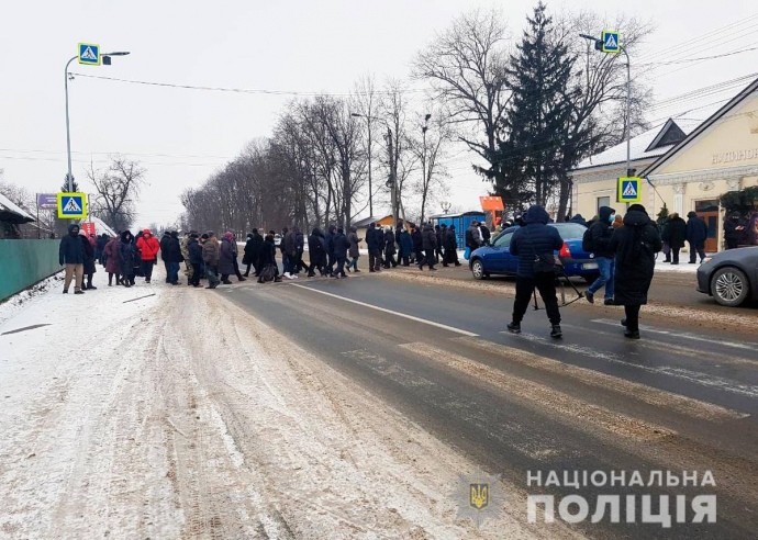 Дослівно: "Наразі поліцейські зафіксували перекриття руху транспорту місцевими жителями в селах Мамаївці, Дубівці, Берегомет, Неполоківці, Оршівці та в місті Кіцмань. Безперервно рухаючись по пішохідних переходах, громадяни в такий спосіб висловлюють невдоволення тарифами на комунальні послуги. Прохання до водіїв враховувати ситуацію на вказаних автошляхах під час планування своїх поїздок".