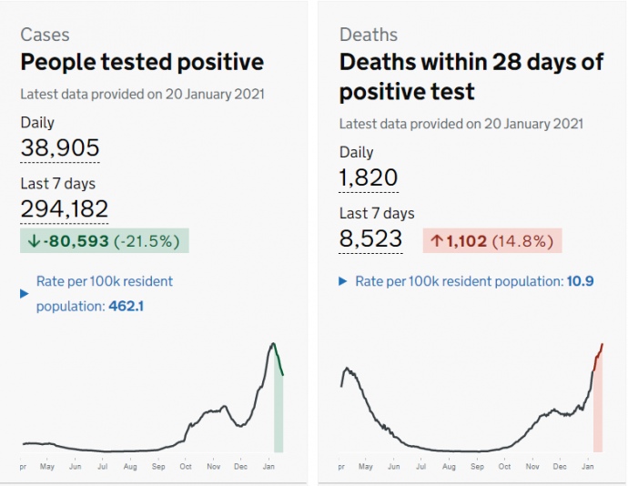 20 січня Британія зареєструвала новий максимум зареєстрованих смертей від коронавірусу за одну добу - померли 1820 хворих.