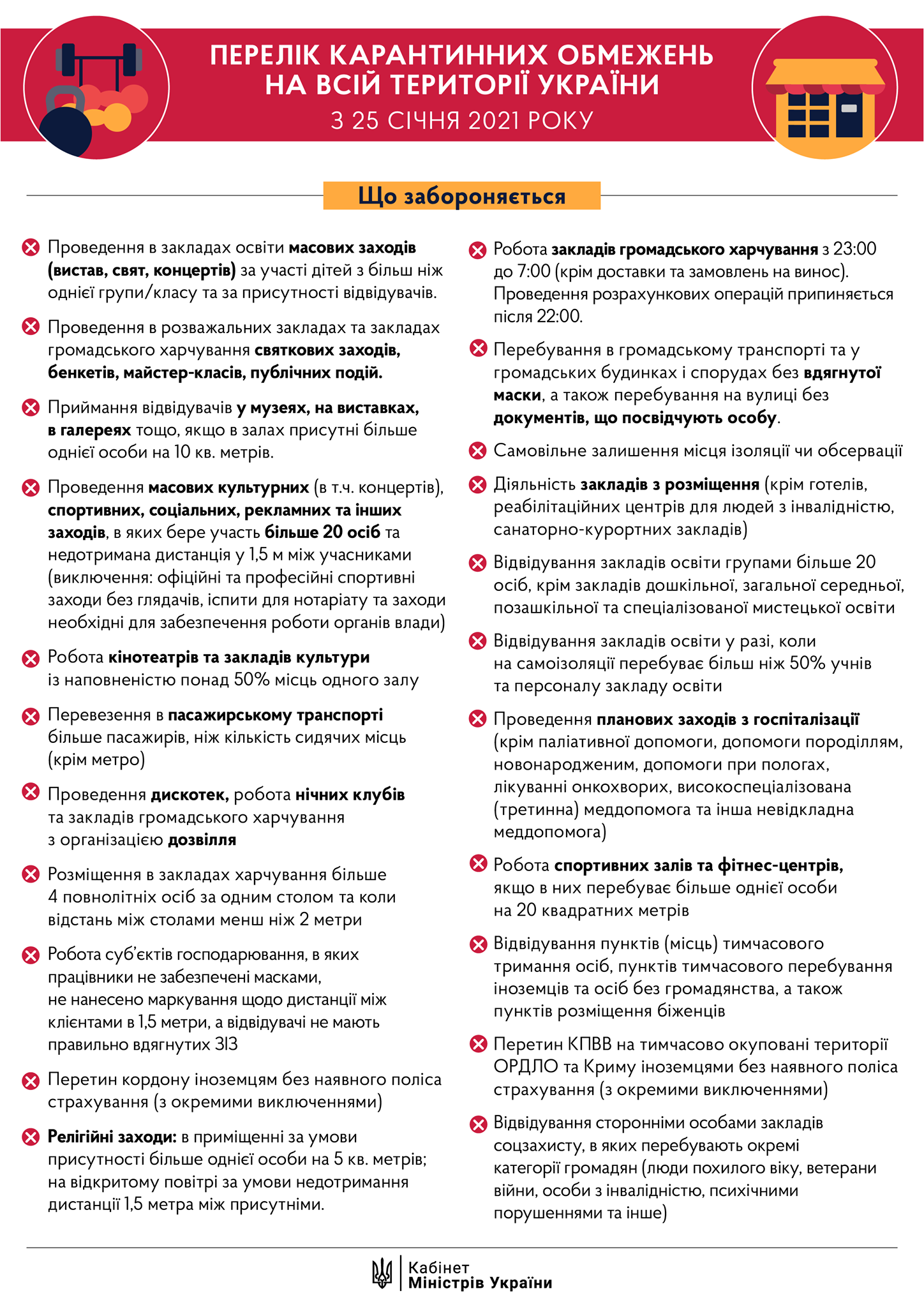 Деталі: Шмигаль також опублікував інфографіку з переліком заборон, що діятимуть із 25 січня.