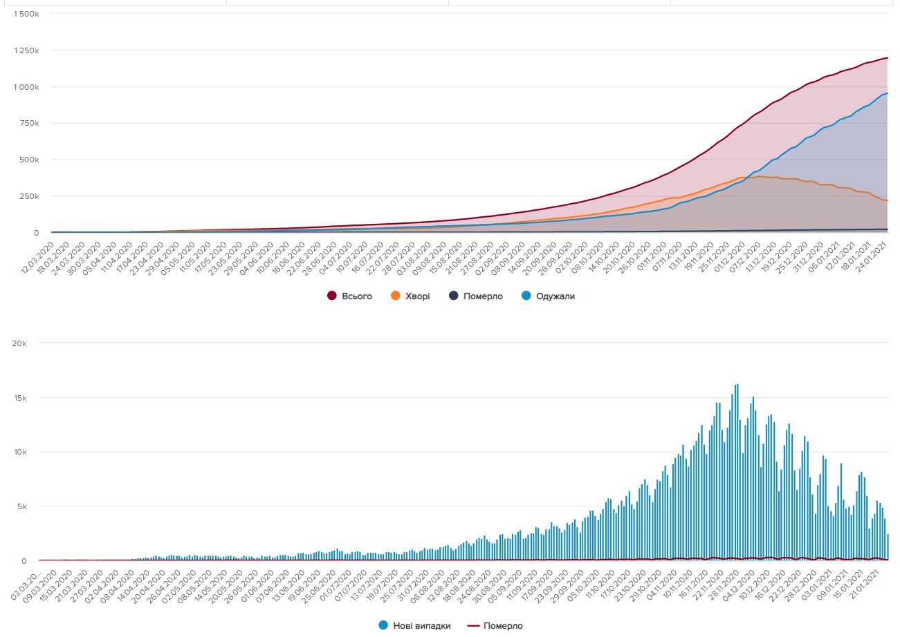 Передісторія: В Україні з 8 до 24 січня включно діяв жорсткіший карантин, не працювали торгово-розважальні центри, магазини промислових товарів, кафе й ресторани (крім як на доставку), спортзали й басейни, драматичні й кінотеатри, музеї, школи й вищі навчальні заклади не приймали учнів та студентів тощо.