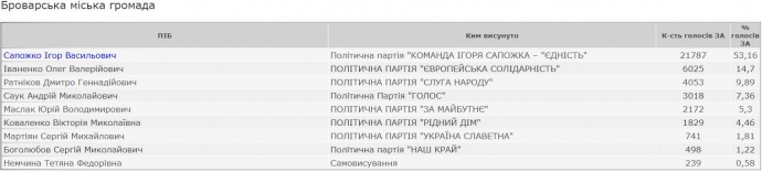 Міським головою міста Бровари у Київській області втретє переобрали Ігоря Сапожка, який перебуває на посаді з 2010 року. До того кілька років він був в.о. міського голови.