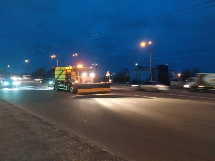 У КМДА повідомили, що у місті триває обробка вулично-дорожньої мережі протиожеледними засобами.
