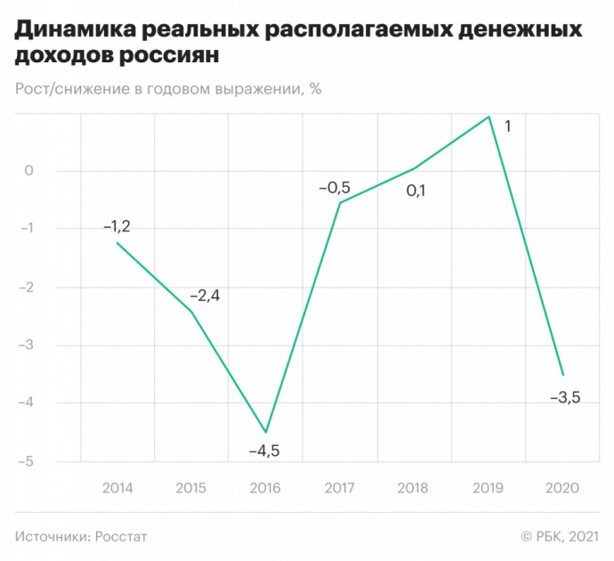 Відзначається, що стабільний ріст доходів росіяни мали до 2013 року включно. З того часу показник лише зменшувався.