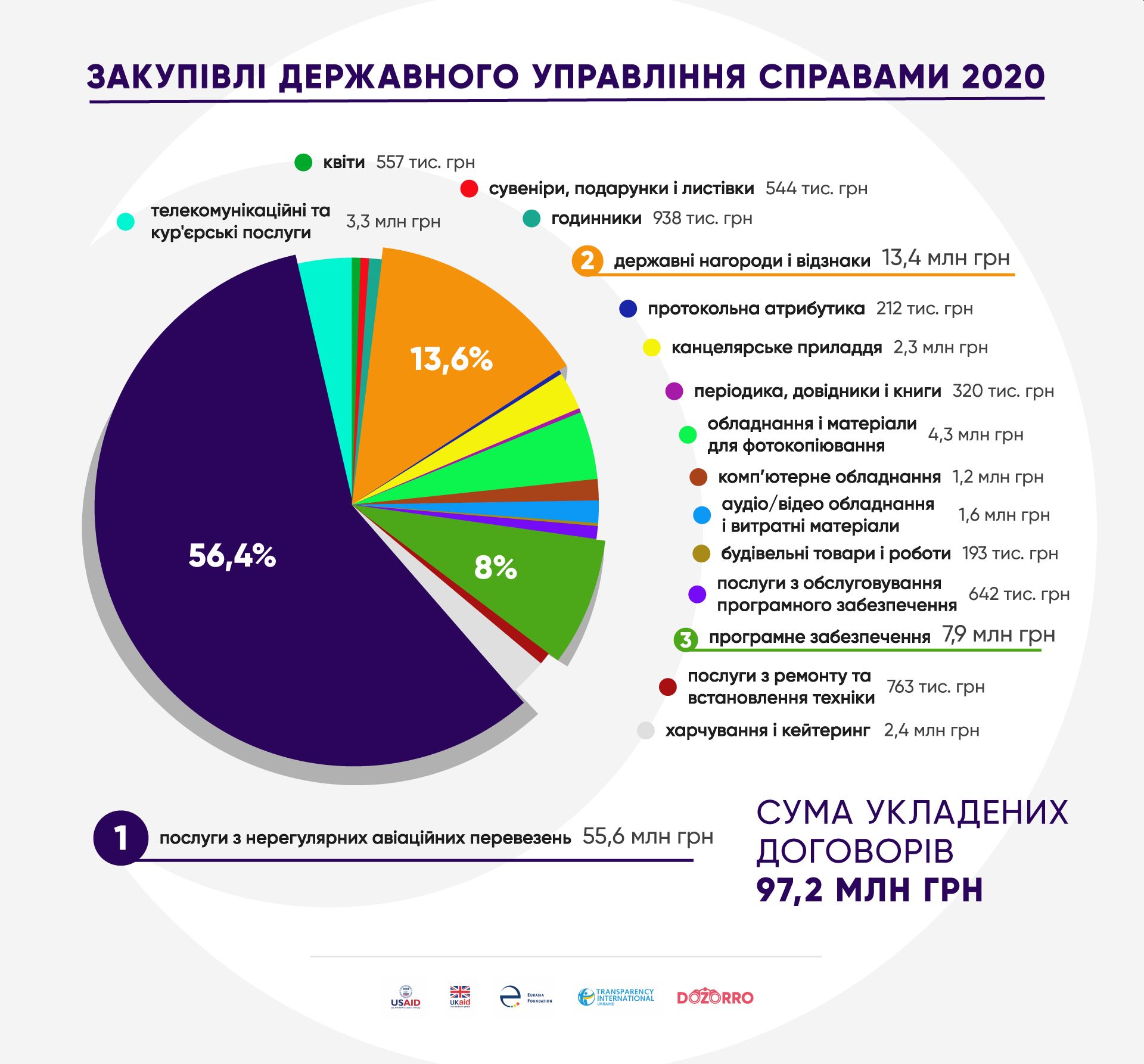 На другому місці у 2020 році опинилися закупівлі державних нагород – 13,4 млн грн.