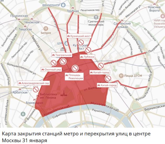 Також поліція Москви оголосила про те, що у зв'язку з акцією на підтримку Навального, яку його прихильники запланували на 31 січня, в центрі міста введуть безпрецедентні обмеження для руху пішоходів і транспорту. Влада планує закрити на вхід і вихід сім станцій метро, змінити маршрути руху громадського транспорту і навіть заборонити прохід пішоходів.