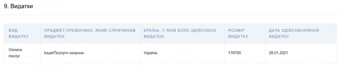 Деталі: Згідно з документом, самі витрати були здійснені 28 січня.