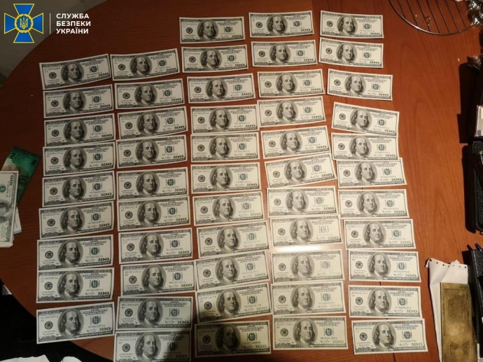 Під час 17 обшуків у фігурантів правоохоронці виявили 25 тисяч підроблених доларів, кліше та обладнання для їх виготовлення, вогнепальну зброю та гроші, отримані злочинним шляхом.