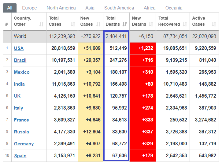 З початку пандемії коронавірус вбив вже 2 484 440 людей