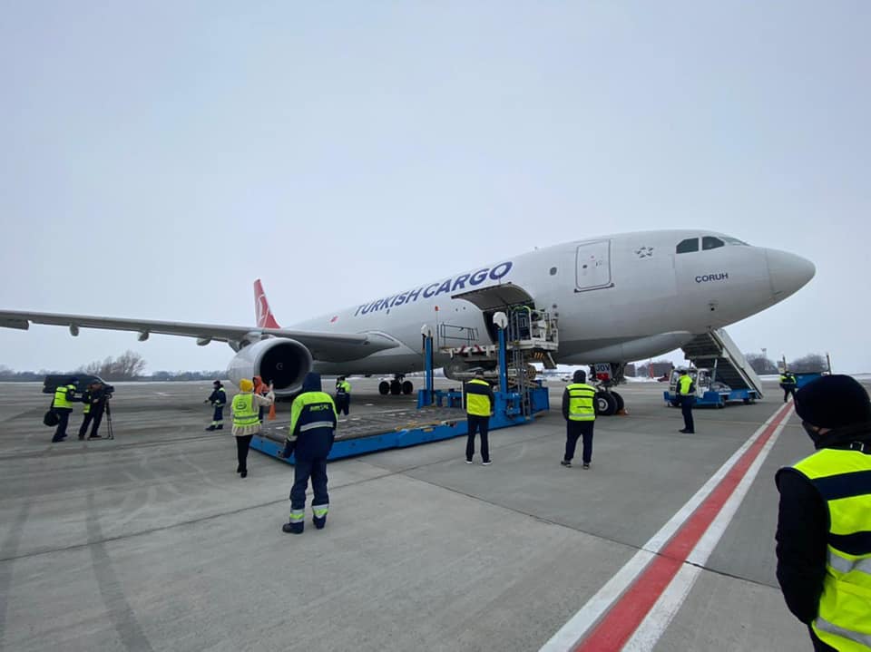 Також у міністерстві надали відео після приземлення літака з вакциною та початком розвантаження препарату.