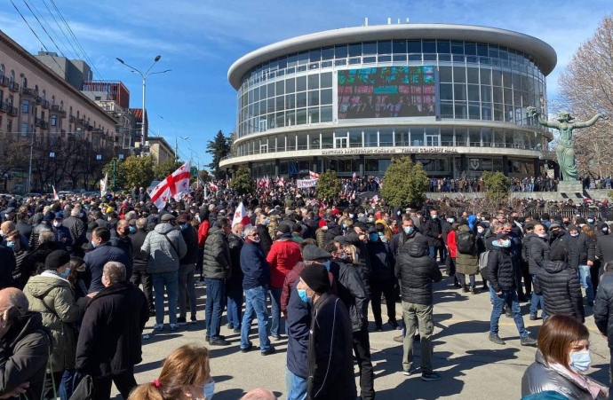 Нагадаємо, вранці 23 лютого поліція Грузії взяла штурмом кімнату офісу "Єдиного національного руху", в якій перебував лідер партії Никанор Мелія, та затримала його.