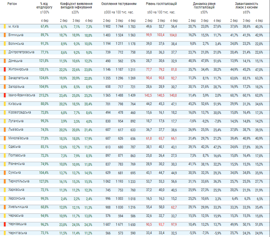 "Червоні" 3 області – Житомирська, Івано-Франківська і Чернівецька;
