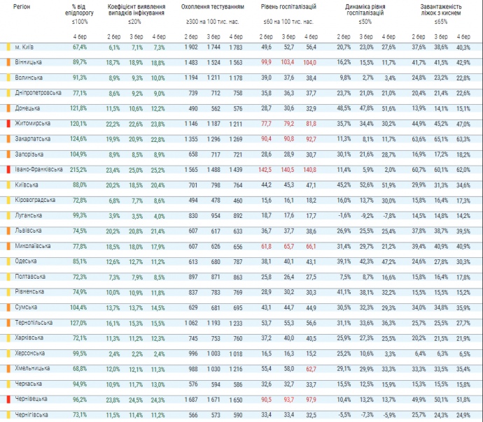 На Київщині, навпаки, ситуація трохи покращилася. Коефіцієнт виявлення випадків інфікування впав нижче 20%.