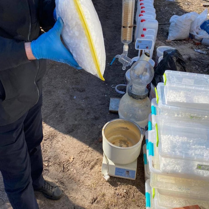 Вилучено: понад 100 кг готових до незаконного збуту амфетаміну, МDMA, PVP та метадону, близько 5 тонн прекурсорів, лабораторне обладнання, 300 тис. доларів США, 30 тис. євро та 20 тис. гривень, ймовірно здобутих злочинним шляхом.