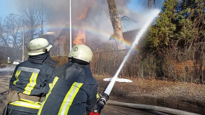 О 15:56 пожежу у двох дерев’яних двоповерхових будівлях у комплексі "Фрегат" ліквідовано.