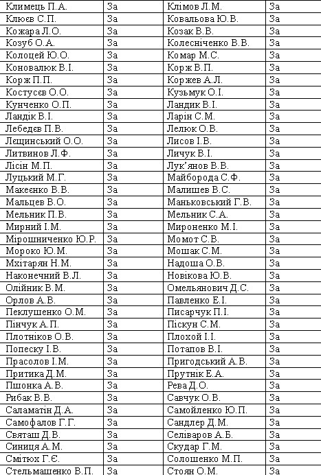 - у повному складі "Партія регіонів" (160 "за" та один відсутній"),
