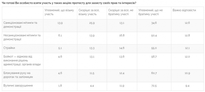 Деталі: У санкціонованих мітингах і демонстраціях готові взяти участь близько 40% українців.