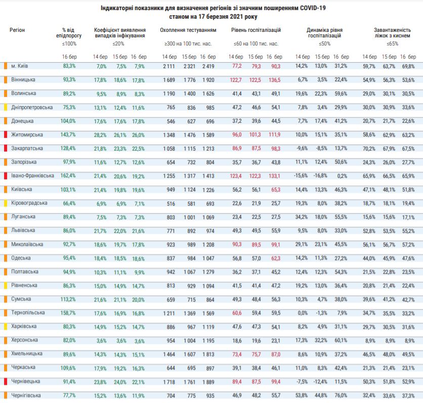16 березня у "помаранчевій" зоні було лише 10 регіонів.