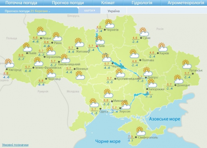 21-го березня - хмар поменшає, сонця побільшає, без істотних опадів".