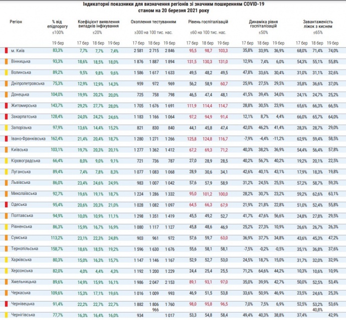 Довідка: Міністерство охорони здоров’я щодня оновлює ознаки для визначення регіону із значним поширенням COVID-19.