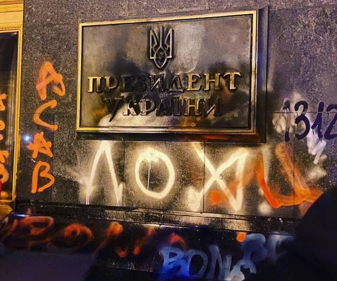 Ввечері 20 березня на Банковій під час акції на підтримку ув'язненого Сергія Стерненка мітингувальники розбили вікна Офісу президента, залили стіни фарбою та намагалися підпалити будівлю.