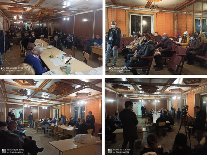 Близько 2:30 ночі ОВК оголосила перерву на санітарну обробку приміщення та тимчасово припинила свою роботу. Членів ДВК вивели на вулицю, а представники ОВК, кілька спостерігачів і представники кандидатів залишились у приміщенні.