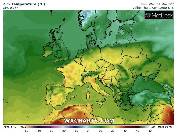 Вздовж смуги Сумщина-Черкащина-Полтавщина-Одещина повітря буде трохи свіжішим, але також тепло, +11+15 градусів.