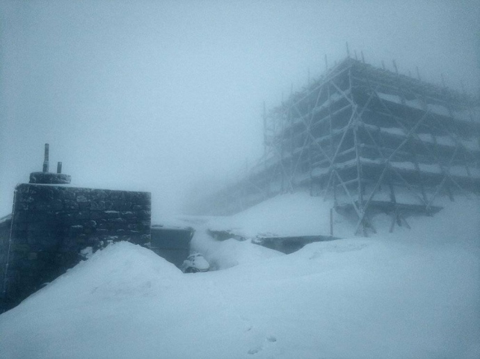 Дослівно: Станом на 08:00, 02.04.2021 на г. Піп Іван Чорногірський хмарно, туман (видимість до 50 м), температура повітря -1°С, вітер північний 11 м/с. За ніч випало до 15 см мокрого снігу.