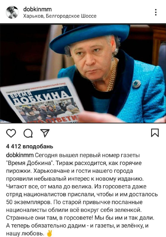 Сам же Добкін у своєму Instagram не приховує таких дій. Каже, що газети "розлітаються як гарячі пиріжки".