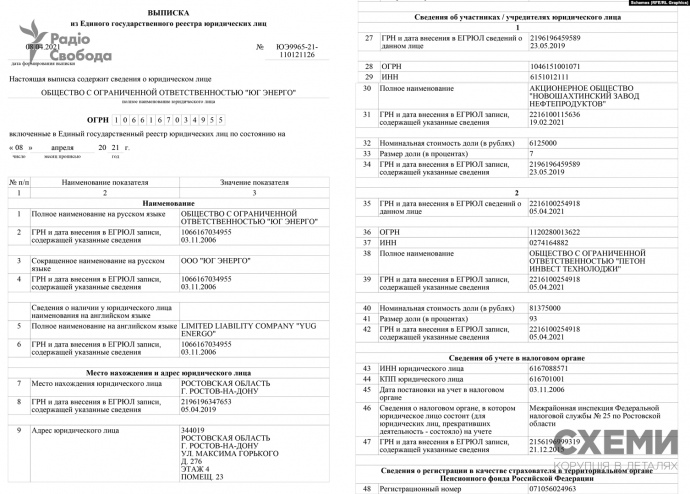 Деталі: За даними реєстру юридичних осіб Росії, 5 квітня 2021 року російська компанія "Юг Энерго", яку, згідно з декларацією Медведчука, контролює його дружина Оксана Марченко, змінила власників.