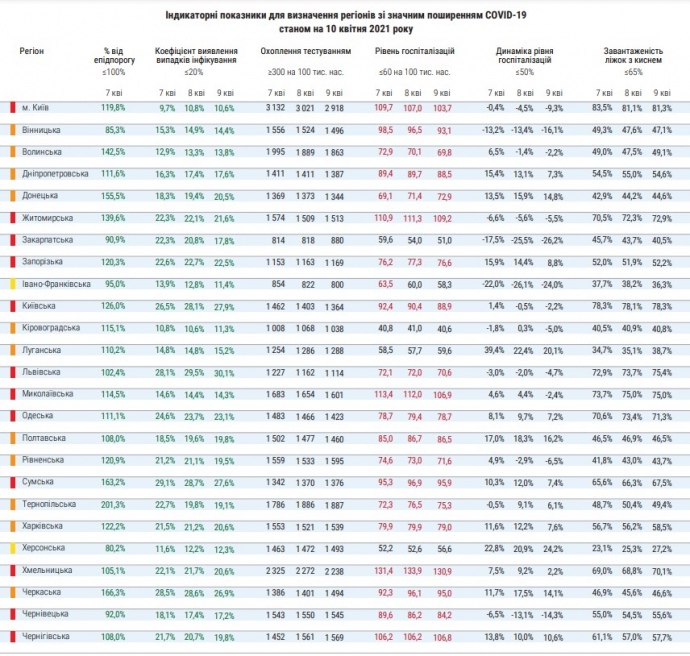 Деталі: Станом на 10 квітня за індикаторними показниками для визначення регіонів зі значним поширенням COVID-19 Івано-Франківська та Херсонська області віднесені до "жовтих".