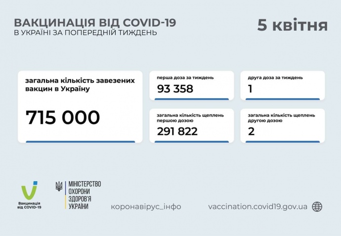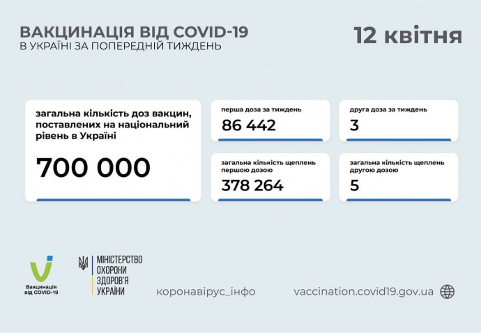 Деталі: Минулого тижня, 12-18 квітня дозу вакцини отримав 72 381 українець.