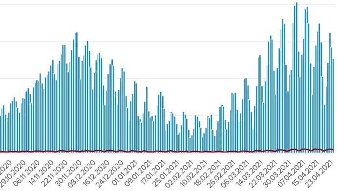 Деталі: 12 711 нових випадків коронавірусної хвороби зафіксовано в Україні станом на 24 квітня 2021 року. Зокрема, захворіли 532 дитини та 230 медпрацівників.