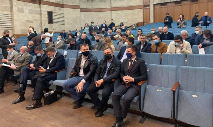 Депутати зібралися для проведення сесії в приміщенні ради, але замки сесійної зали поміняли і їх не пустили. Телефоном голова Скляров відмовився відчинити і не прийшов.