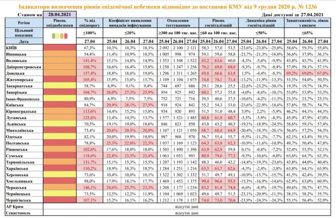 У Києві вже 27 квітня жоден показник не перевищував допустимий рівень. Але щоб регіон вийшов із червоної зони, показники мають три дні поспіль не перевищувати індикаторні.