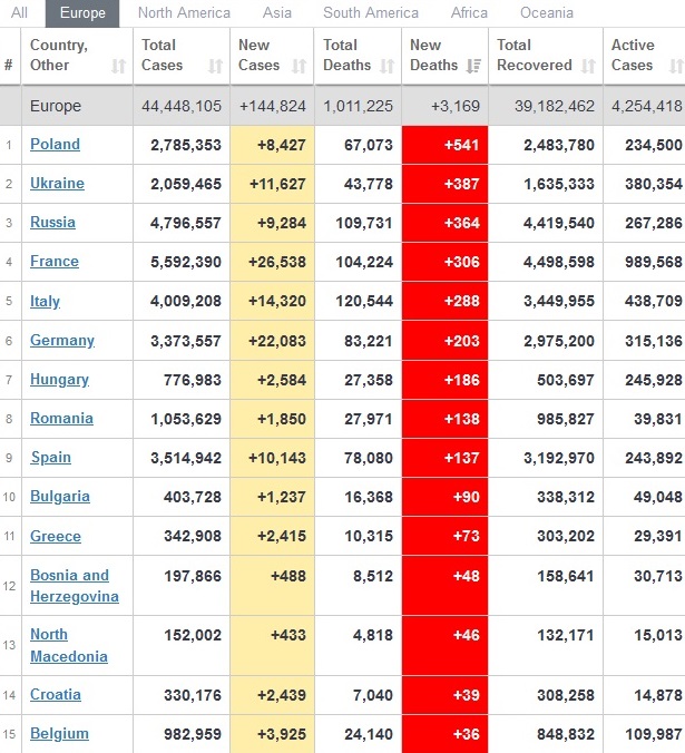 У світі померли за добу 15 124 осіб, у яких підтвердили коронавірус.