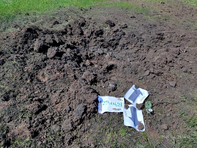 Дослівно: "28 квітня, ввечері, з району населеного пункту Молодіжне у напрямку селища Катеринівка, окупанти випустили 6 мін з міномету калібру 120 мм.
