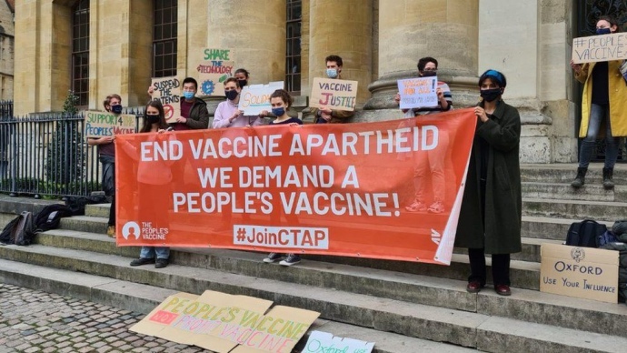 Організатори протесту заявляють, що вакцину розробили за участі науковців Оксфорду, що фінансується з бюджету, і загалом процес розробки на 97% фінансувався з публічних коштів, тому результат мав би бути "відкрито доступний для усіх".
