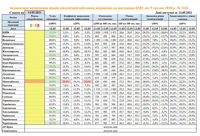14 травня Миколаївська область знову повернулася до "помаранчевої" зони епідемічної небезпеки поширення COVID-19.