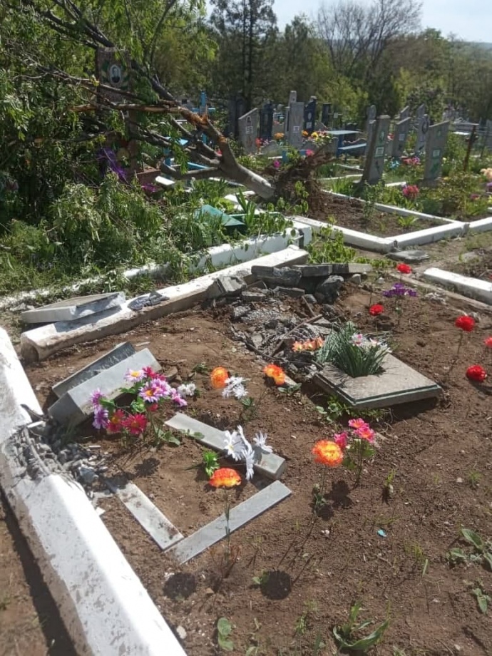 По кладовищу в окупованому Перевальську (населений пункт за 40 км від Луганська) проїхала військова техніка незаконних воєнізованих формувань так званої "ЛНР", зруйнувавши могили.