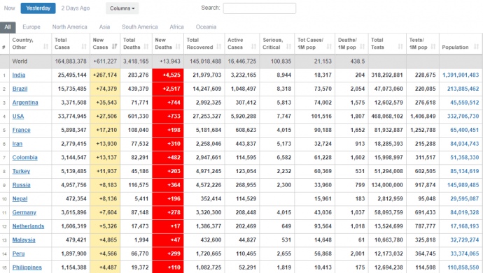 Деталі: Зокрема, в Індії – 267 174 зараження, в Бразилії – 74 379, в Аргентині – 35 543.