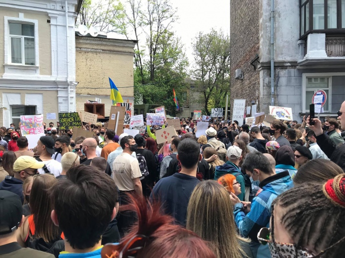 На акції присутні прапори України та ЛГБТІК спільноти.