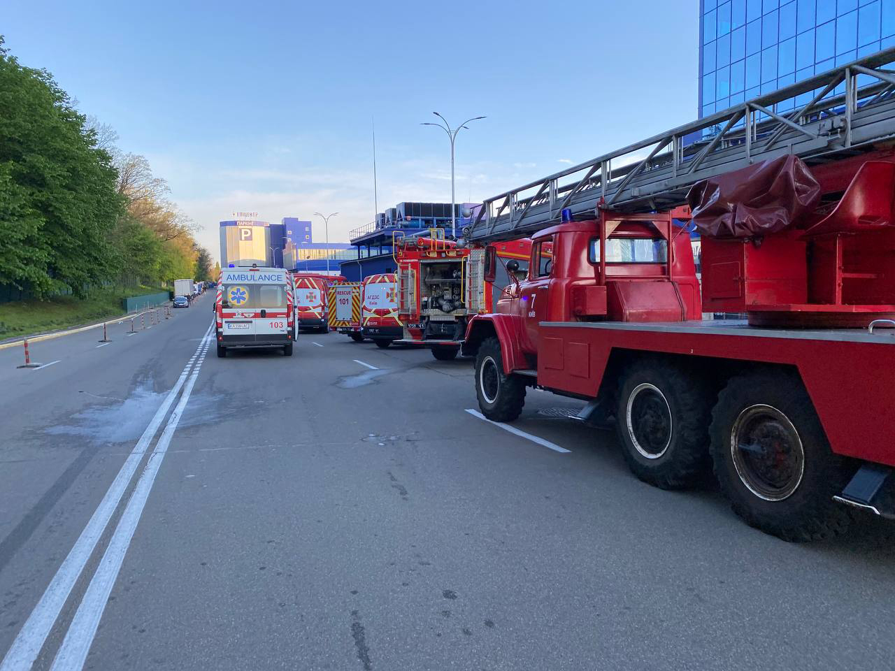 У Києві сталася пожежа в адміністративній будівлі по вул. Берковецькій, що належить ТЦ "Епіцентр".