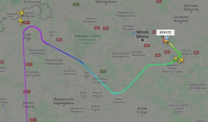 Літак Ryanair, що прямував з Афін до Вільнюса, примусово посадили у Мінську, щоб затримати колишнього редактора телеграм-каналу NEXTA Романа Протасевича.