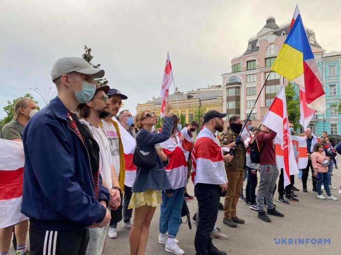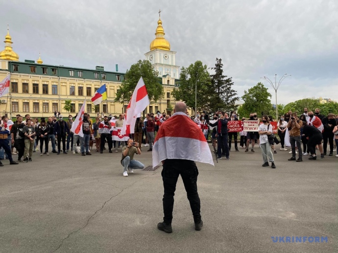 У Києві біля Міністерства закордонних справ України відбулася акція на підтримку затриманого у Мінську засновника опозиційного Телеграм-каналу Nexta Романа Протасевича.