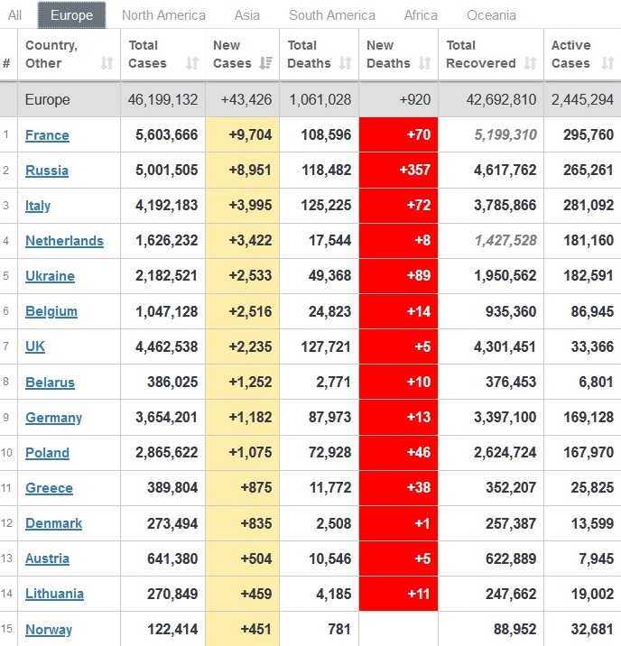 Україна повернулася в 5-ку лідерів у Європі за поширенням коронавірусу