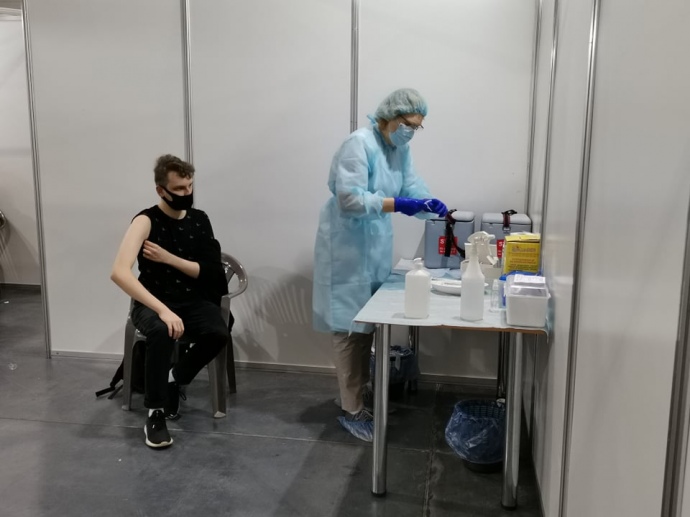 У Центрі вакцинації від COVID-19 в Міжнародному виставковому центрі в Києві почали вакцинацію людей, які записалися на щеплення через "Дію".